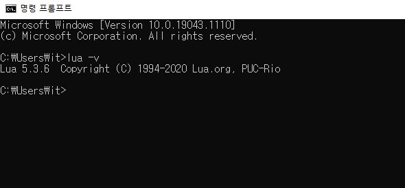 cmd 창을 열어 lua -v 를 입력한다.
