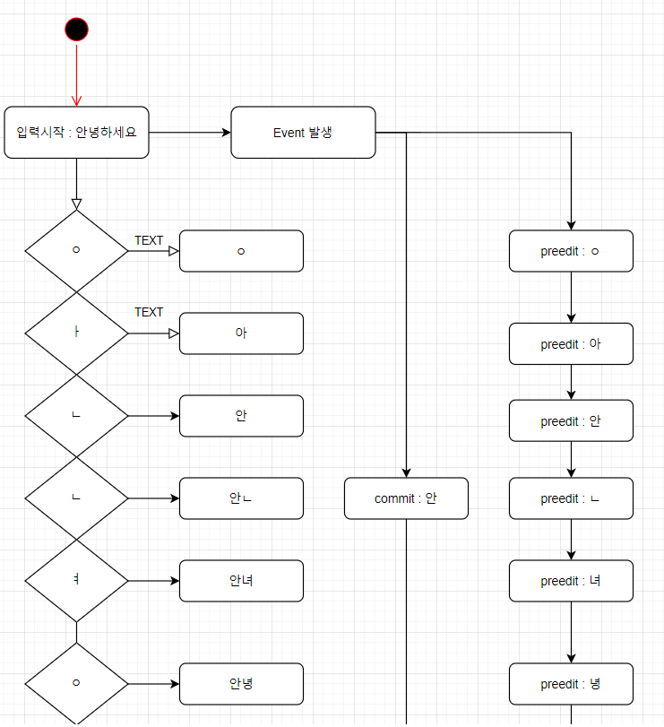 이런식으로 일일이 commit, preedit을 활용하여 한글을 하나하나 뜯어보며 코딩할수있었다.