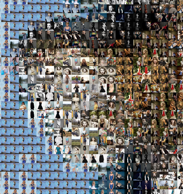 컬러에 맞는 위치에 배열하여 마치 새로운 한장의 큰 이미지를 표현하도록 한 것으로
