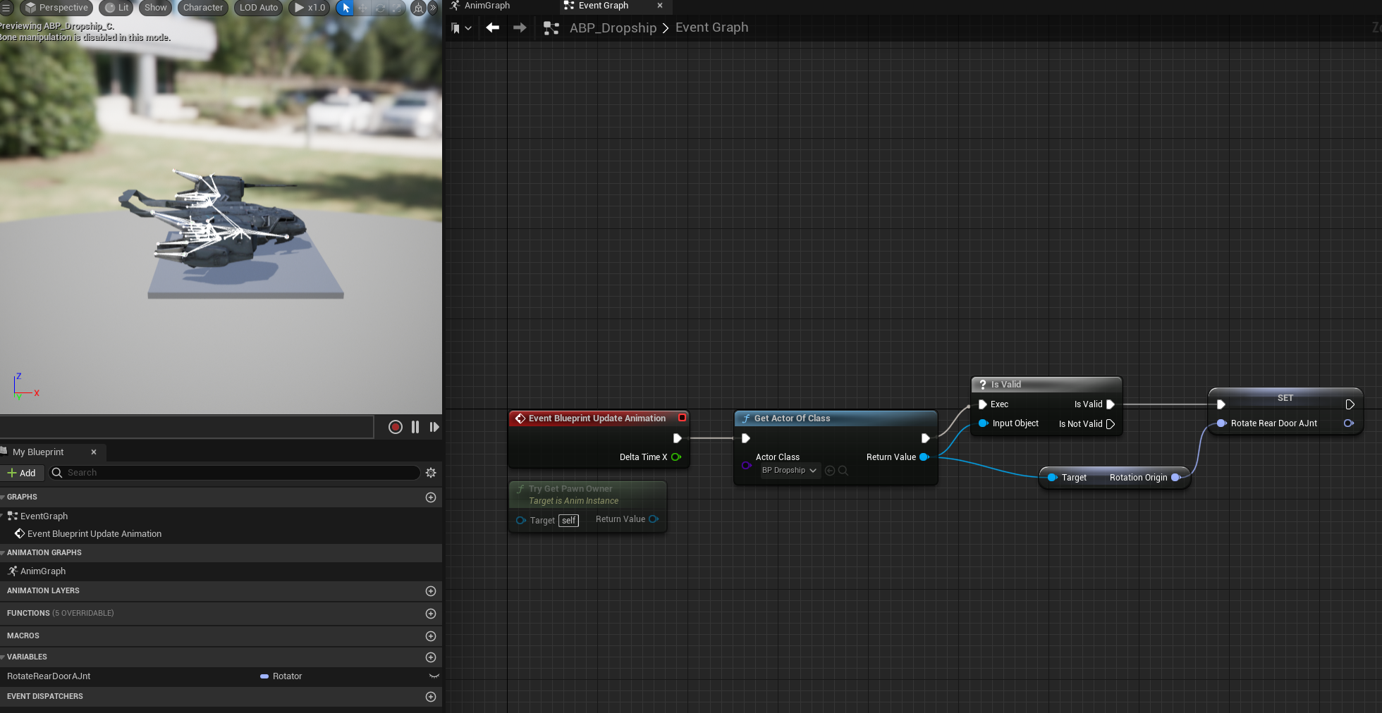 ABP의 EventGraph에서는 BP클래스를 참조해 회전시킬값을 받아온다