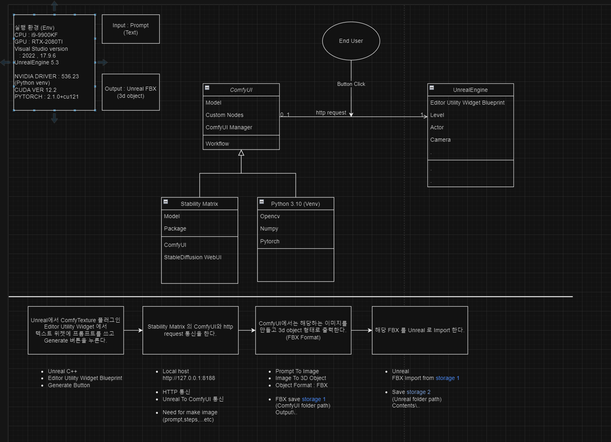 UnrealEngine의 EditorUtilityWidget의 버튼을 클릭시 HTTP post request 를 ComfyUI로 요청할 것이고,