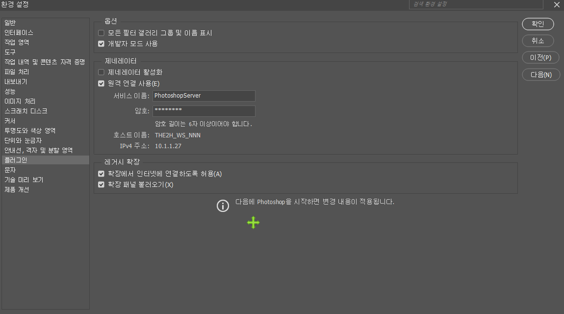 4. 포토샵에서 Ctrl+K를 눌러 환경 설정에서