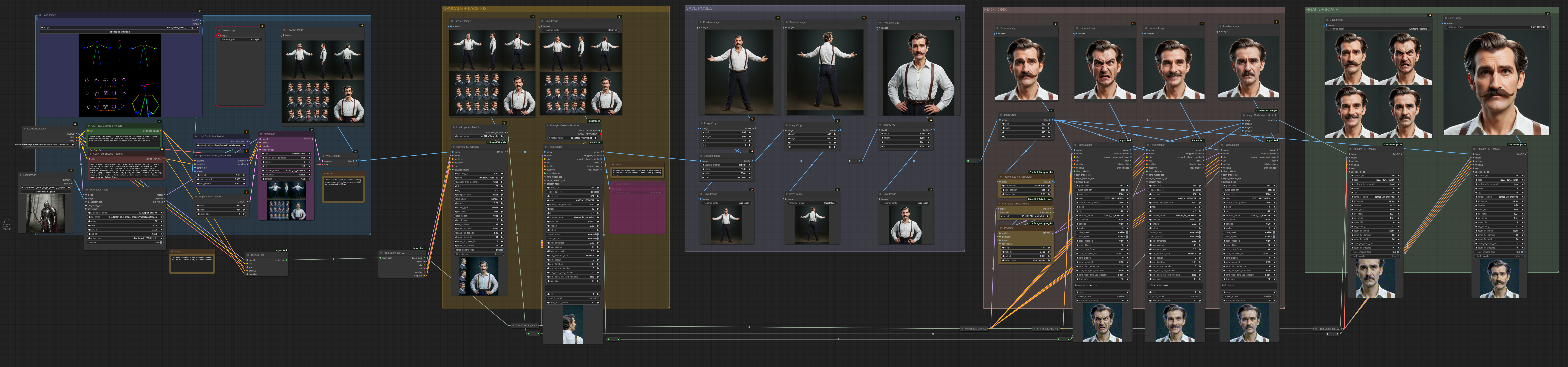 ( ImpactPack, UltimateSDUpscale, ComfyUI_IPAdapter_plus, KJNodes for ComfyUI ... )